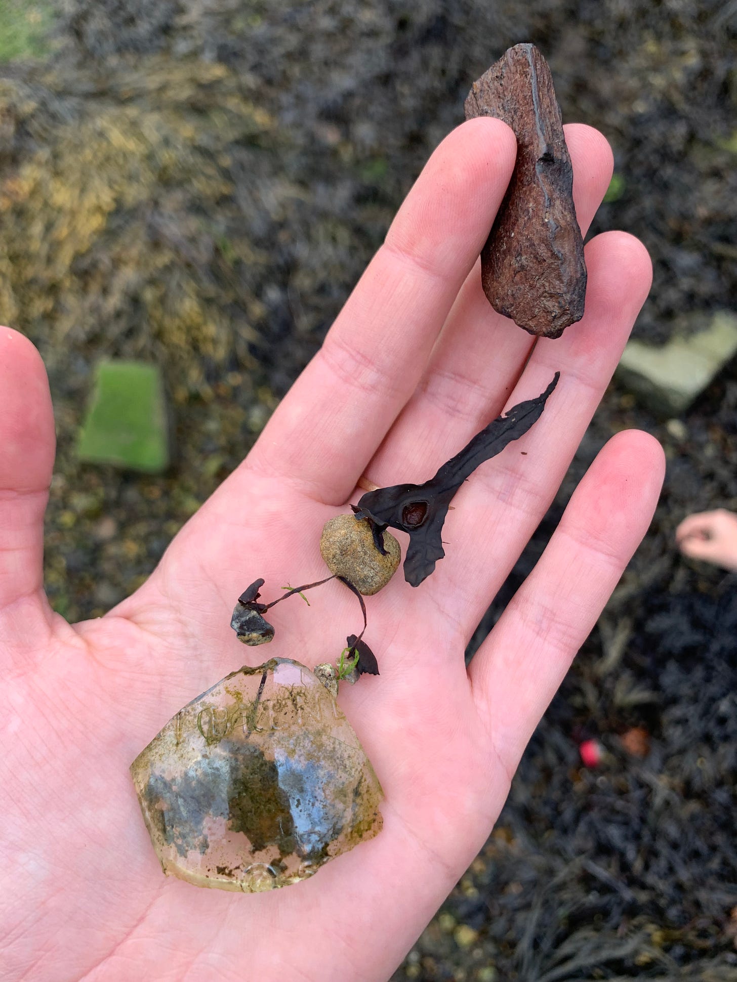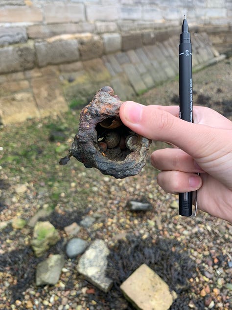 Ruby found an amazing hollow piece of metal which had merged with stones, shells and sea creatures.